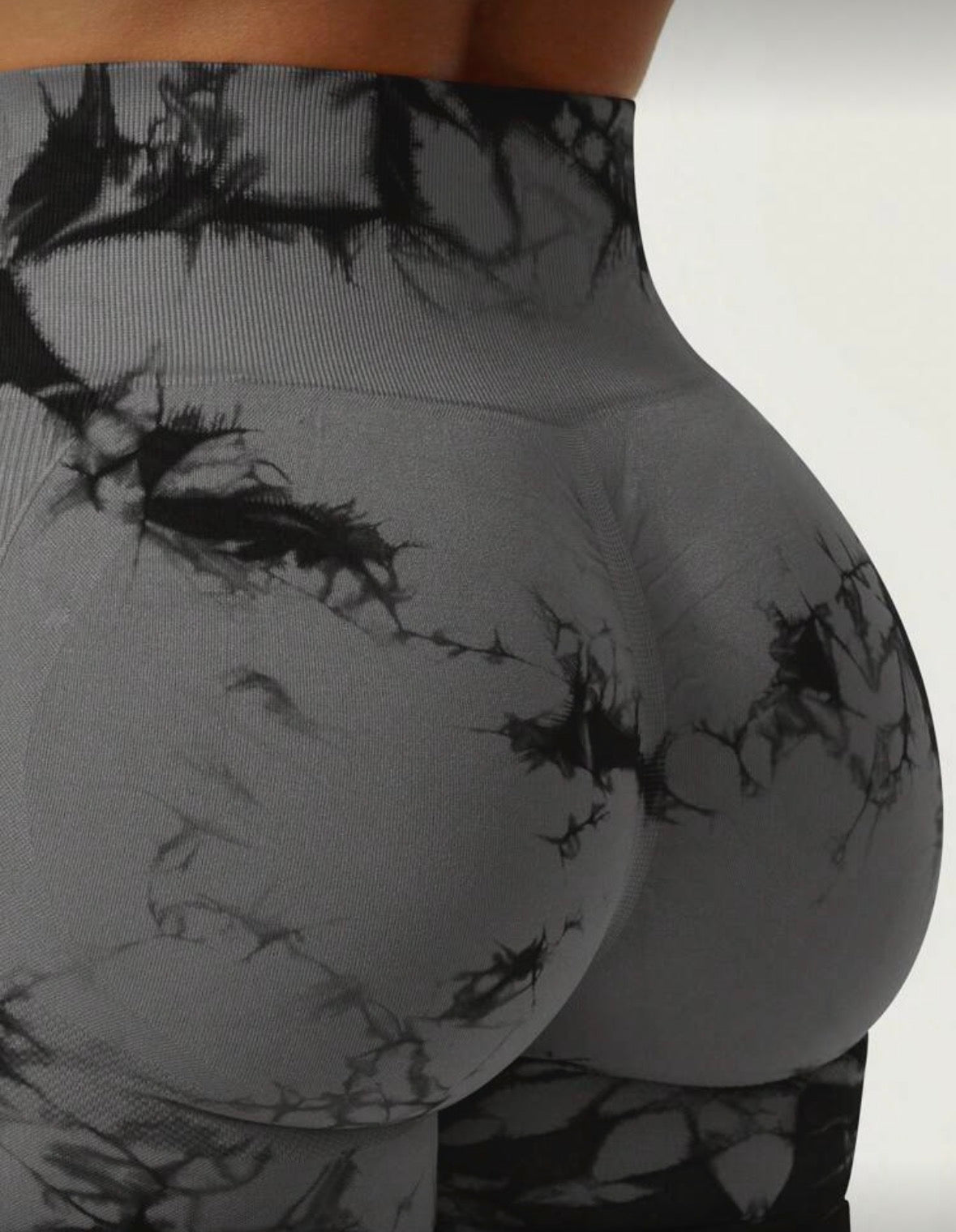 1pc Women's Fashion Tie-Dye Colorblock Yoga Sports Shorts With Stretch, Seamless Outdoor Cycling Pants
