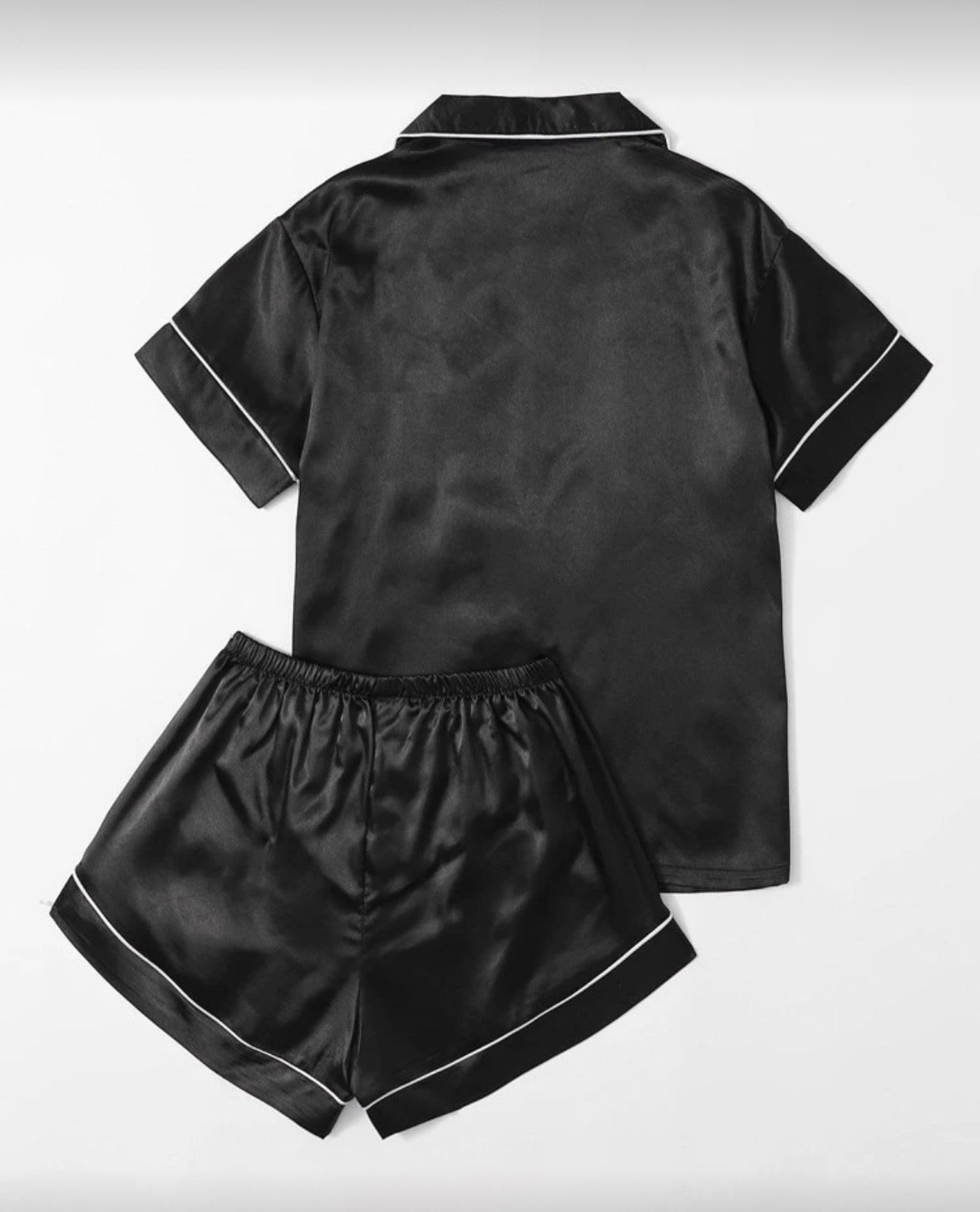 LuxeNights Plus Contrast Piping Satin Pajama Set