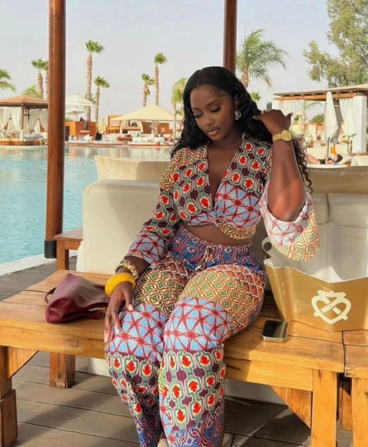 Women’s 2 pc cropped long sleeve top and multi colour loose cute pants