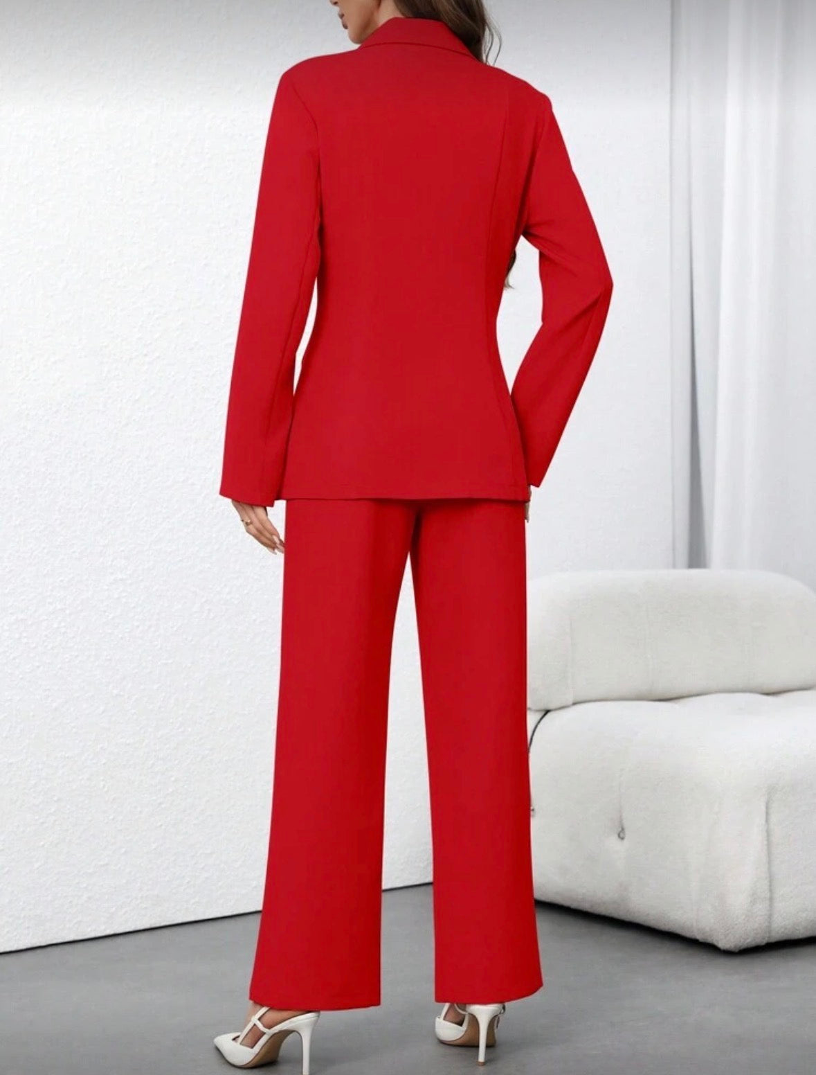 Women’s 2 pc formal elegant high waist plain solid colour blazer and pants