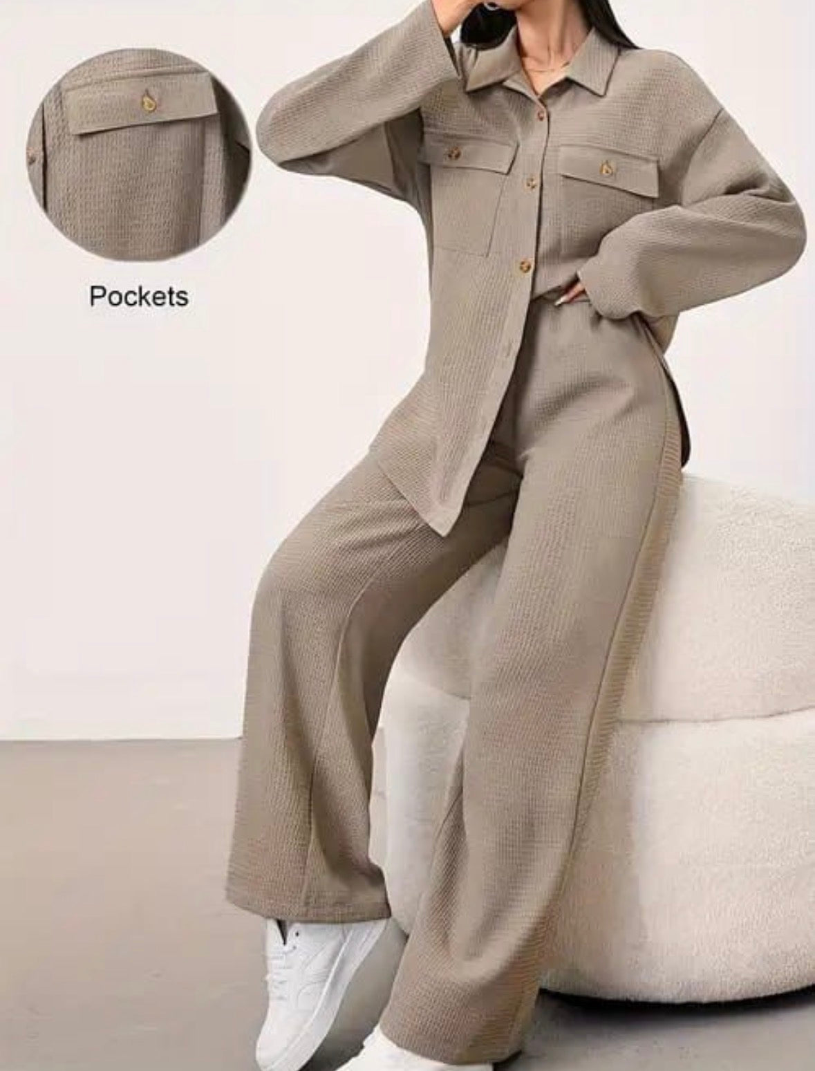 Women’s green 2 piece outer was home wear comfortable long sleeve shirt and loose pants