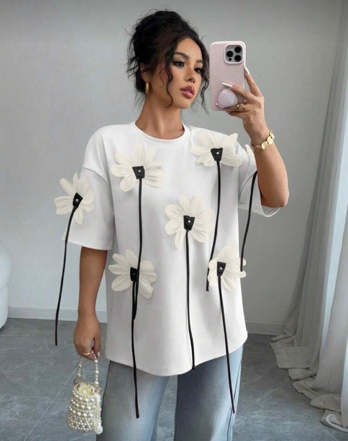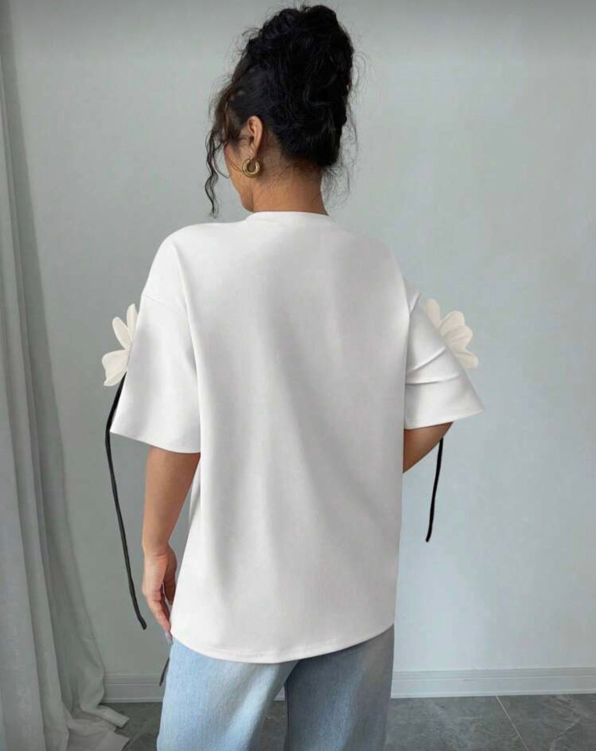 Women's Elegant 3D Floral Print Short Sleeve T-Shirt, Valentine's Day